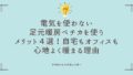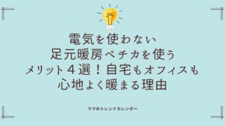 くらし 電気を使わない足元暖房ペチカを使うメリット4選!自宅もオフィスも心地よく暖まる理由 寒い季節、デスクワーク中やリビングで「足だけ冷える…」と感じていませんか?結論から言うと、電気を使わない足元暖房ペチカは... 2025.11.24 くらし