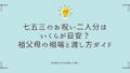 七五三 七五三のお祝い二人分はいくらが目安?祖父母の相場と渡し方ガイド 七五三のお祝いで悩むのが、孫が二人いるときの金額ですよね。七五三のお祝い二人分を祖父母が包む場合、相場を知っておくと安心... 2025.11.06 七五三