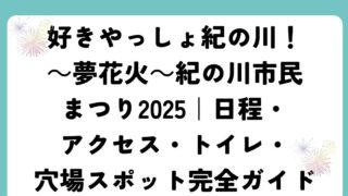花火大会 好きやっしょ紀の川!~夢花火~紀の川市民まつり2025|日程・アクセス・トイレ・穴場スポット完全ガイド 和歌山県紀の川市の夏を彩る「好きやっしょ紀の川!~夢花火~紀の川市民まつり2025」は、地域全体が盛り上がる一大イベント... 2025.08.24 花火大会