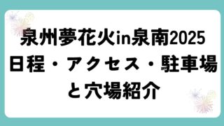 花火大会 泉州夢花火in泉南2025|日程・アクセス・駐車場と穴場紹介 関西でもトップクラスの規模を誇る「泉州夢花火in泉南」。大阪湾を舞台に、毎年多くの観客が集まる大迫力の花火大会です。20... 2025.08.23 花火大会