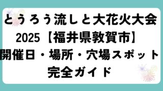 花火大会 とうろう流しと大花火大会2025【福井県敦賀市】開催日・場所・見どころ完全ガイド 福井県敦賀市の名勝「気比の松原」を舞台に開催される「とうろう流しと大花火大会2025」。海面を漂う数千の灯ろうと夜空を彩... 2025.08.14 花火大会