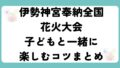- 観覧エリアからは徒歩5~15分ほどかかる場合があるため、授乳のタイミングを計画的に。