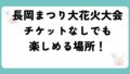 - 大池公園:メイン会場に近く、視界良好。芝生広場と遊歩道が広く、ゆったり観覧可能。家族連れにも人気。
