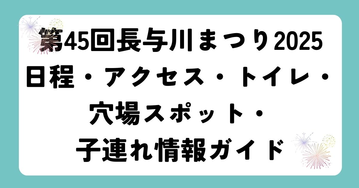 長崎県長与町の夏を代表する「第45回長与川まつり」は、地域の人々に親しまれる大イベントです。花火大会を中心に多彩な催しが行われ、家族連れや観光客で賑わいます。本記事では、日程やアクセス、花火の見どころ、トイレ情報、混雑を避けられる穴場スポット5選、子連れにおすすめの観覧エリアまで詳しく紹介します。