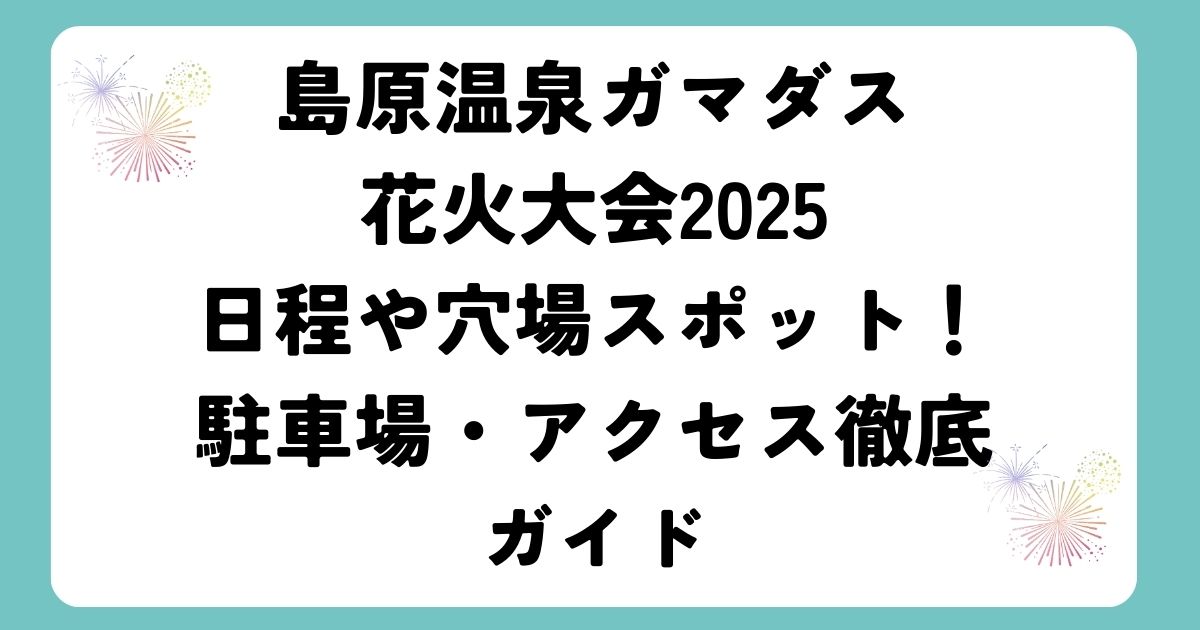 島原温泉ガマダス花火大会は、長崎県島原市で毎年8月28日に開催される夏の風物詩です。温泉地ならではの立地と、海と街を背景に打ち上がる大迫力の花火は九州でも指折りの人気を誇ります。本記事では2025年の日程やアクセス、駐車場情報に加えて、混雑回避のコツや穴場スポットを詳しく解説します。初めて行く方でも安心できるよう、観覧に役立つ情報をまとめました。