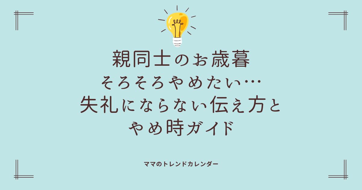 親同士のお歳暮、そろそろやめたい…失礼にならない伝え方とやめ時ガイド まとめ