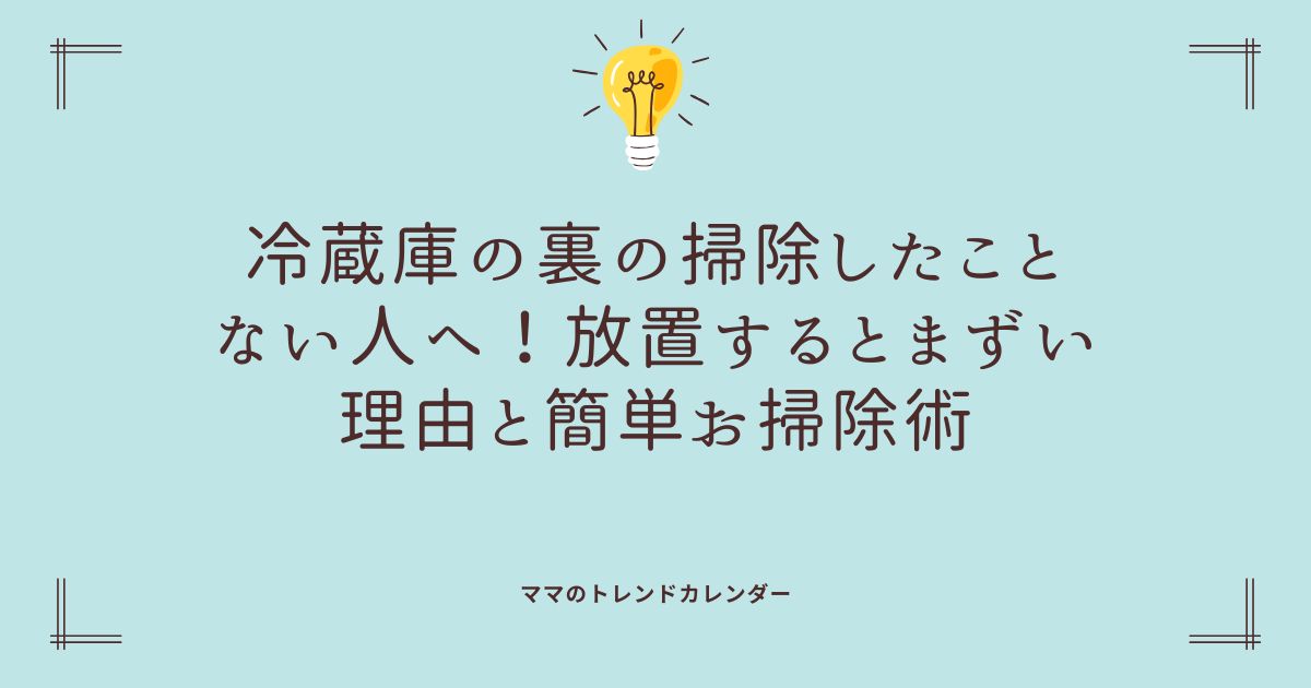 この記事では、無理なくできる冷蔵庫裏のお掃除術を、やさしく詳しく解説します。