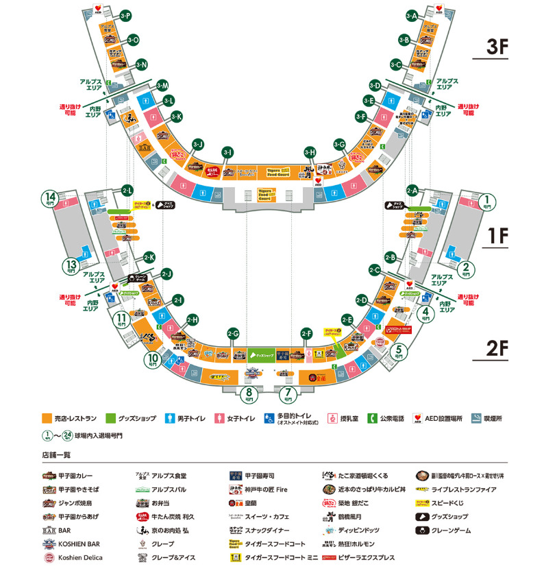 阪神甲子園球場には、授乳室や多目的トイレが設置されています。ただし、その数は限られており、場所によっては距離がある場合もあります。