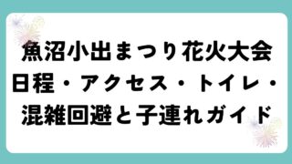 花火大会 魚沼小出まつり花火大会2025|日程・アクセス・トイレ・混雑回避と子連れガイド 魚沼小出まつり花火大会は、新潟県魚沼市で毎年開催される夏の風物詩です。迫力満点の花火と、地域の人々の温かさを感じられるこ... 2025.08.25 花火大会
