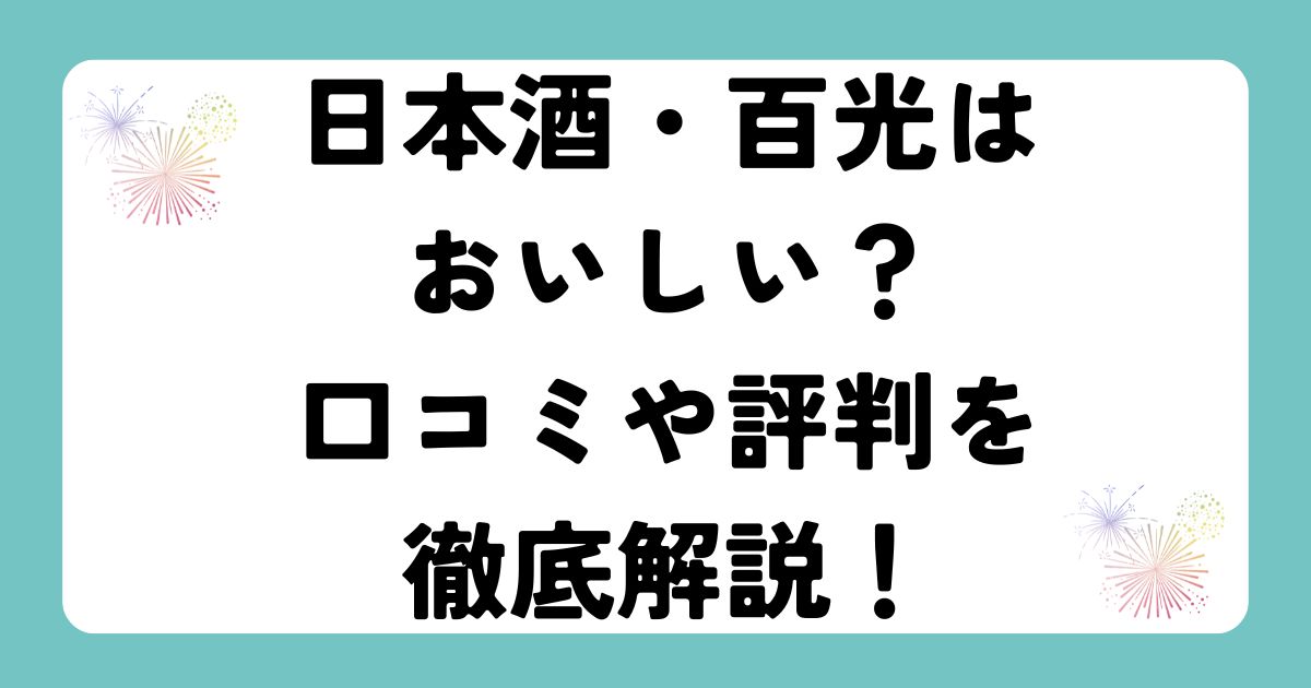日本酒『百光』はおいしい?実際に飲んだ人の口コミや評判を徹底解説